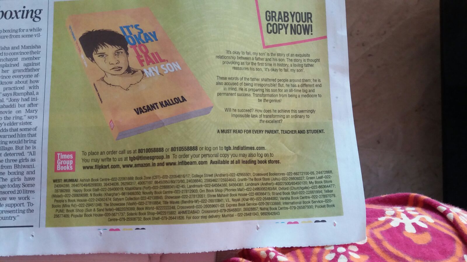 - Sir, after reading a tremendous book like 'IT'S OKAY TO FAIL MY SON', I have become a huge fan of yours. Now, even if I get stuck in some situation, I remind me of your point of view in my own mind. Strange right? But, actually it is true! Till now, I have read many inspirational stories but never like yours! You are a real genius sir!